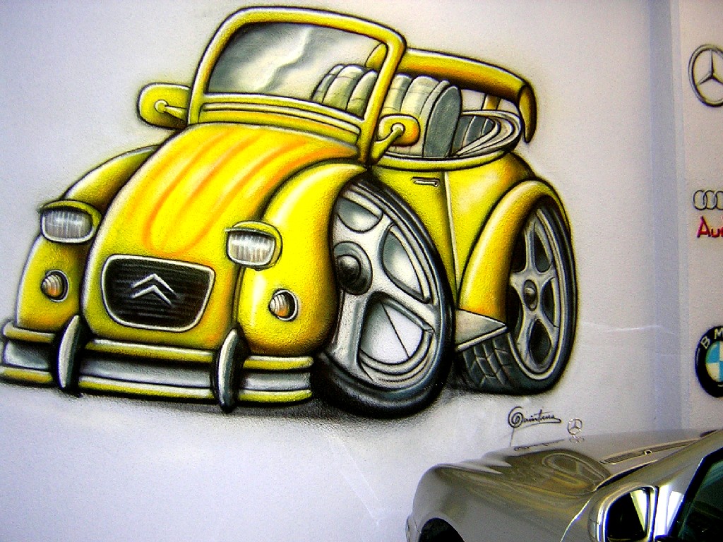 Mural de decoraci??n en taller de coches
