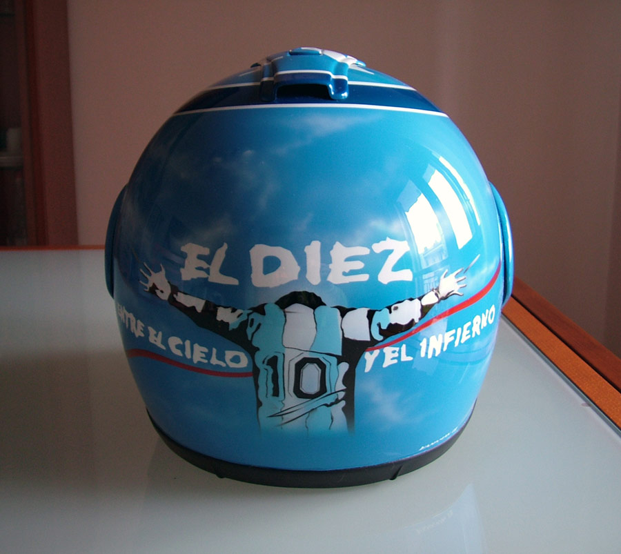 Casco per un tifosissimo del Napoli - l'immagine del grande Maradona