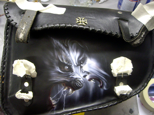aerografo su cuoio