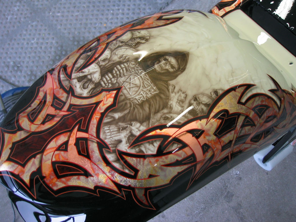 finest airbrush mixed with goldleaf tribals & pinstripe