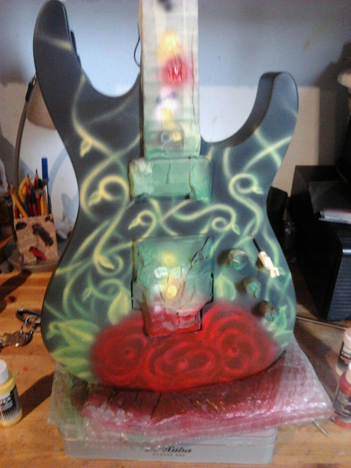 airbrushfree.net / Tury Art Shot rose con radici su chitarra