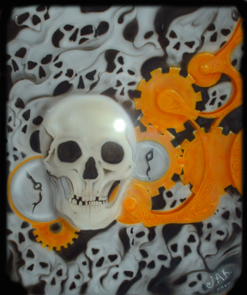 aerografia a mano libera su pannello di metallo 43x52