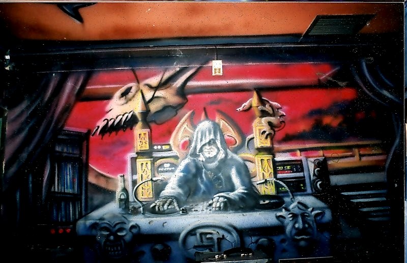 Cabina DJ. Pintura fluorescente activada con luz negra