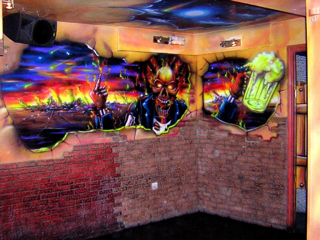 ?öltima drecoraci??n de la Barmacia. Marzo 2008. Se han cambiado 2 murales, los ba?±os y el cartel de entrada