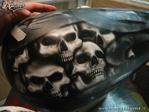 serbatoio fiamme con teschi in lavorazione par Massimo Fogliazza sur airbrushfree.net