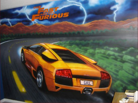 Lamborghini Kids room mural 2007 par Corrado Mallia sur airbrushfree.net