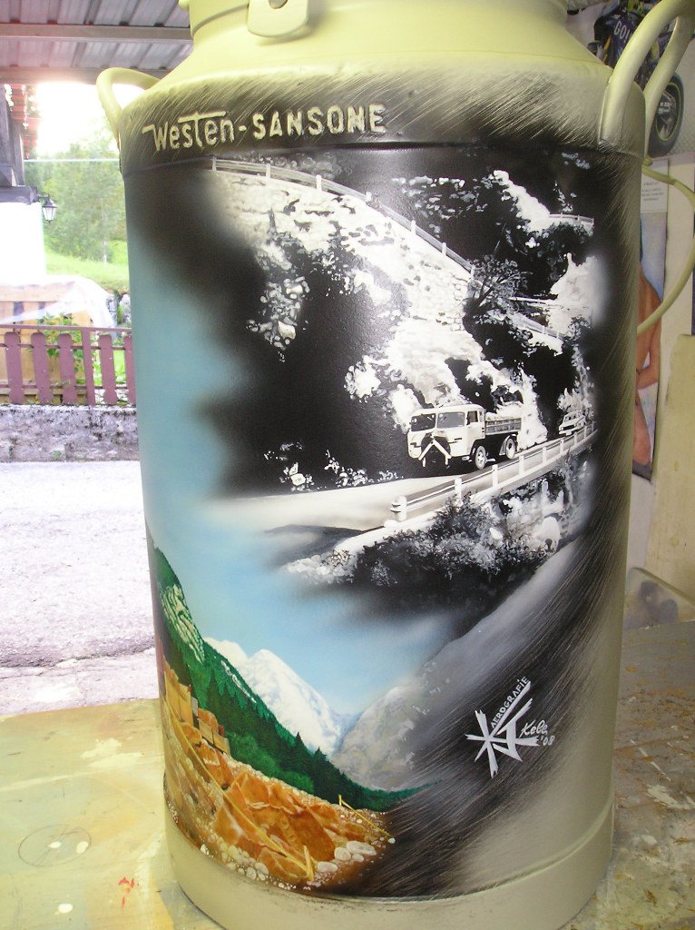 disegnato su bidone vecchio x latte risistemato copiato da foto vecchia