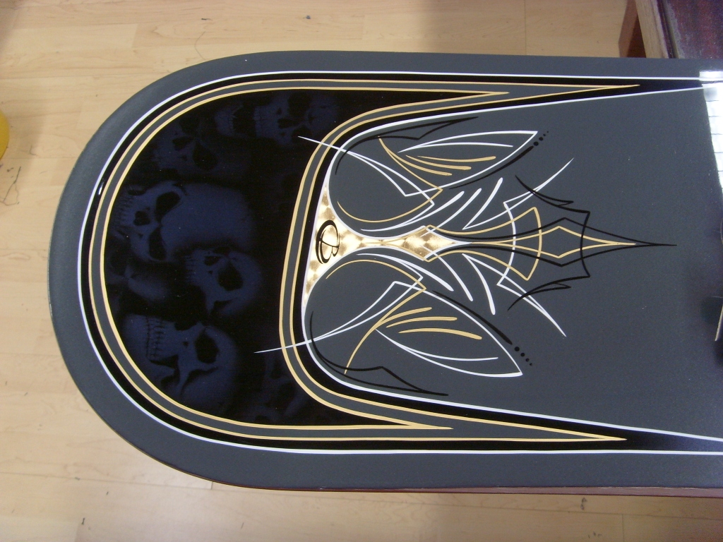 freehand skulls under black candy, refined with swirled goldleaf and pinstripes