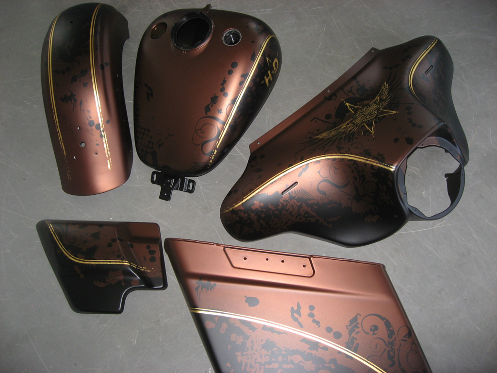 2011 custompaint real House of Flames Harley-Davidson Munich fine crazy grafix on pearl brown with goldleaf & black, matt clearcoat