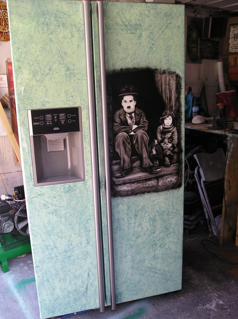 marbrizer verde chiaro e scuro su tutto il frigo