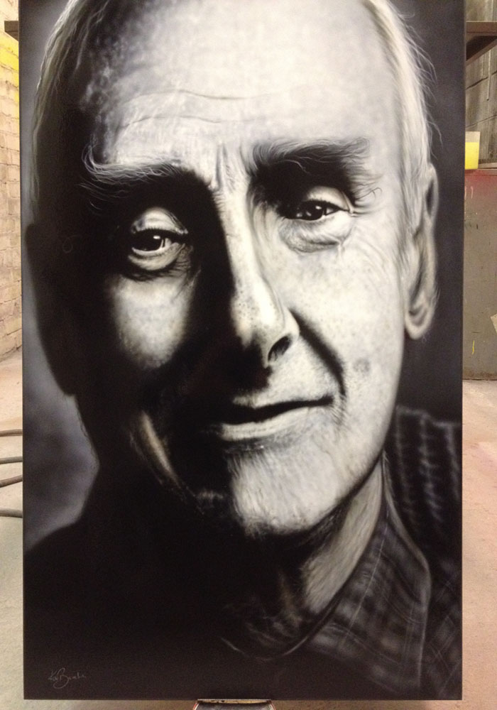 airbrush on wood board 3ft x 2 ft aprox.