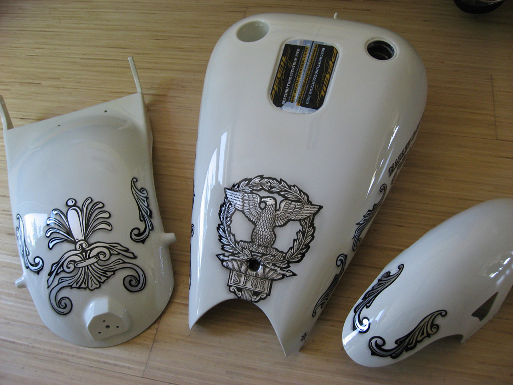 2007 custompaint & airbrush real Harley-Davidson Fierek Bike fine ornaments in silverleaf with pinstripe & 3D shadows